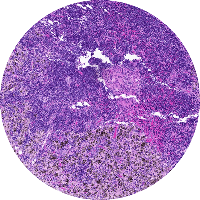 First, we profile tumor samples with our AI models. Next, we choose a large number of regions that are clinically meaningful and representative of overall sample biology to 'core'.